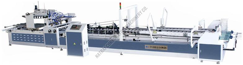 Fully Automatic Carton Folder Gluer Machine consists of three parts which are the feeding paper unit , glue folding unit and counting piling unit, speed adjusted by digital, micro-adjust the phase by computer, with simple quick reliable and precise controlling style, automatic feeding paper, automatic gluing and folding, |